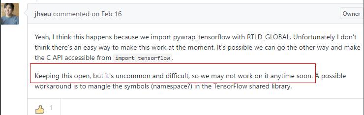为验证C++加载模型调用的准确性,利用swig将c++ api封装成了python库供python调用,在同时import tensorflow as tf和import封装好的python swig接口时,core dump