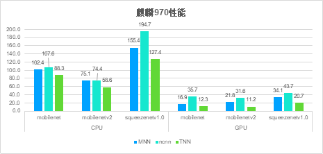 以下是MNN, ncnn, TNN框架在多款主流平台的实测性能: