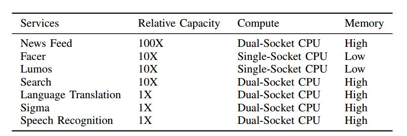 从计算角度来说,大量的在线推断运行在 1xCPU(单插槽)或 2xCPU(双插槽)上,对于 Facebook 的服务,1xCPU 比 2xCPU 更节能高效,因此要尽可能的将模型从 2xCPU 迁移到 1xCPU 上。