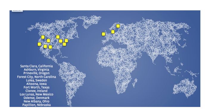 2017 年 12 月 Facebook 全球数据中心位置。
