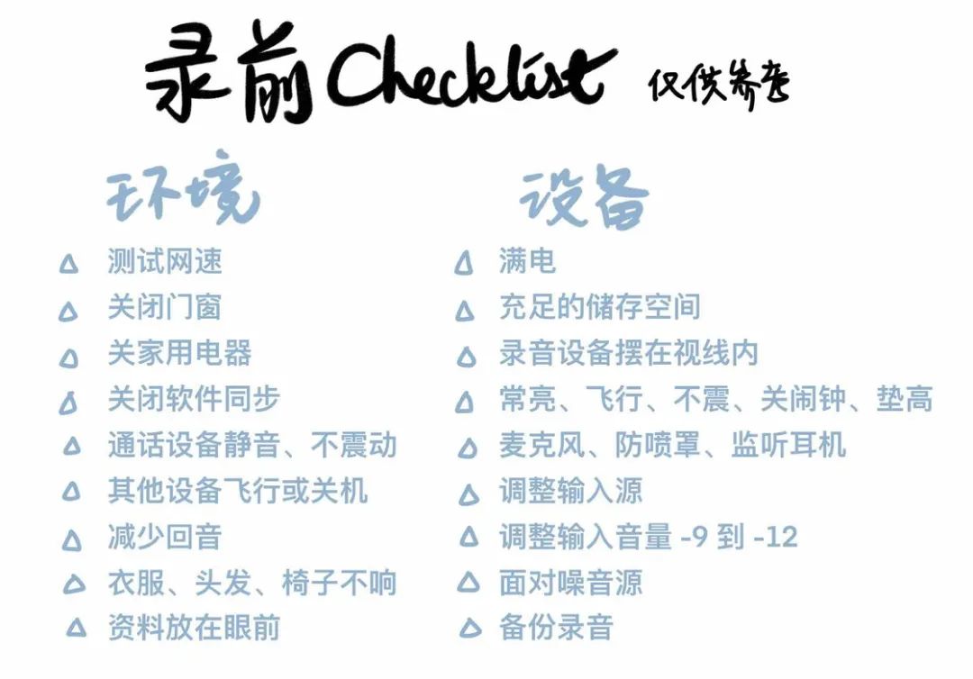 为了帮你更好地准备录音,我们还制作了《录音前的 checklist》,以便你逐条检查: