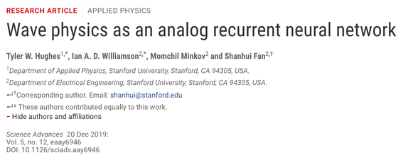 【Science论文】基于波的物理现象作为一种模拟递归神经网络(Wave physics as an analog recurrent neural network)