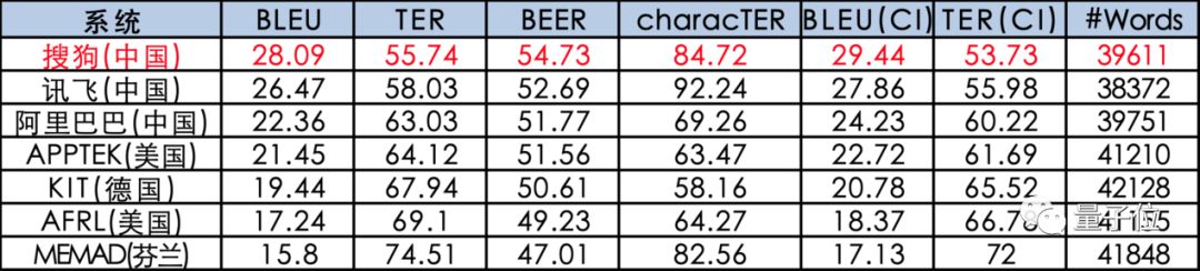 搜狗向大赛提交的系统BLEU值达到28.09,领先排名第二的科大讯飞1.6个BLEU,领先第三名的阿里巴巴5.73个BLEU。