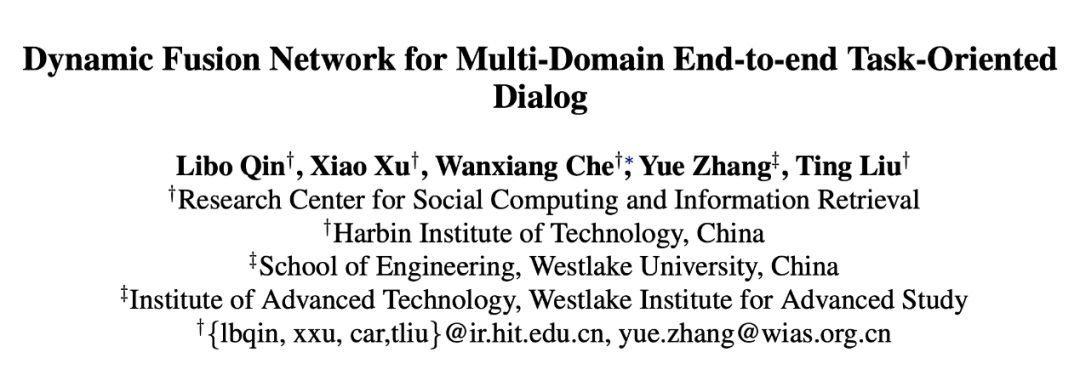 论文标题:Dynamic Fusion Network for Multi-Domain End-to-end Task-Oriented Dialog