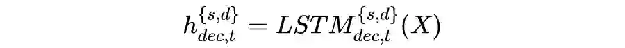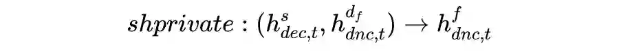 在第 t 步 decoder 中,私有及功效隐藏状态为: