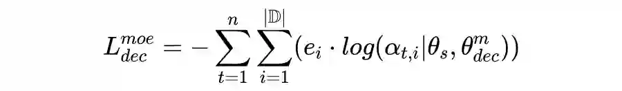 可以看作多个私有 decoder 预测的第 t 个 token 的领域概率分布。因此,更准确的专家预测结果为: