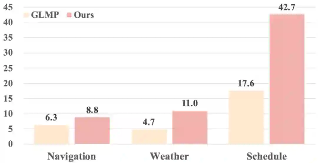 这种方法区分了共享以及私有的知识,但还存在两个问题:一是面对一个几乎不具备数据的新领域时,私有模块无法有效提取对应的领域知识;二是这个架构忽略了一些领域子集间细粒度的想关性(比如和天气领域相比,导航领域和规划领域更相关)。
