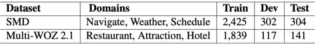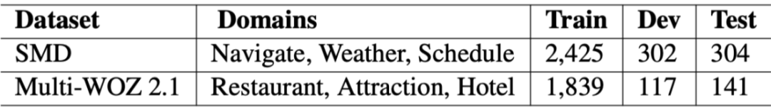实验在 SMD 和 Multi-WOZ 2.1.数据集上进行:
