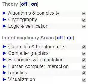 CSRankings.org 的计算机科学高校排名依据的是院校2006-2018年间,在计算机科学各领域较高级会议发表的论文数量。它将计算机科学分为了 4 个门类:AI(人工智能)、Systems(系统)、Theory(理论)、Interdisciplinary Areas(跨学科领域)。在 AI 这一门类下,又分为5个方向:人工智能、计算机视觉、机器学习和数据挖掘、自然语言处理、网页和信息提取。