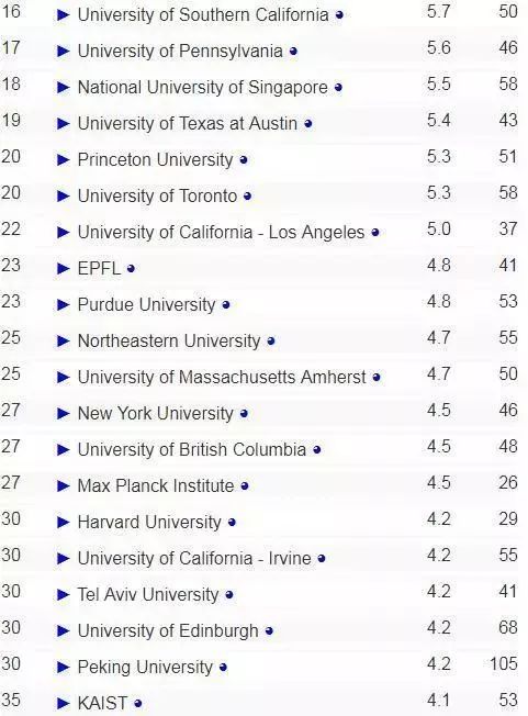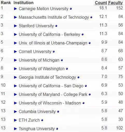 该排名完全基于研究指标,其度量了绝大多数院校教员在计算机科学领域的各大顶会所发布的论文数量。