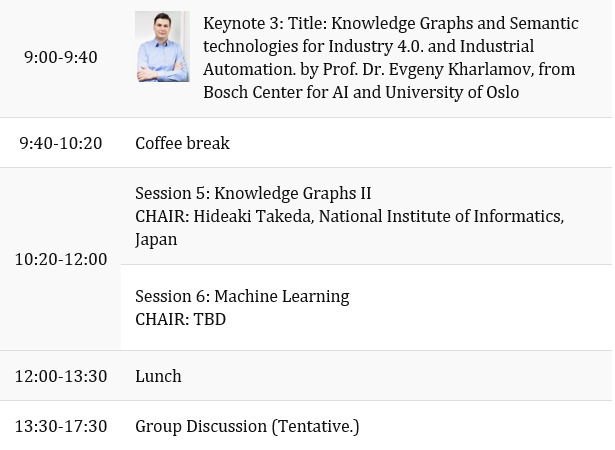 Invited Talks: (Title TBA) Evgeny Kharlamov, from Bosch Center for AI and University of Oslo