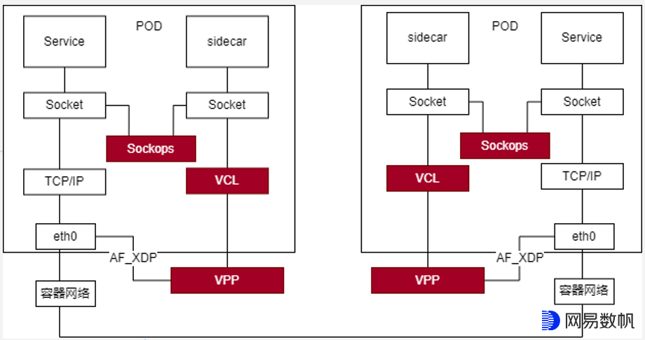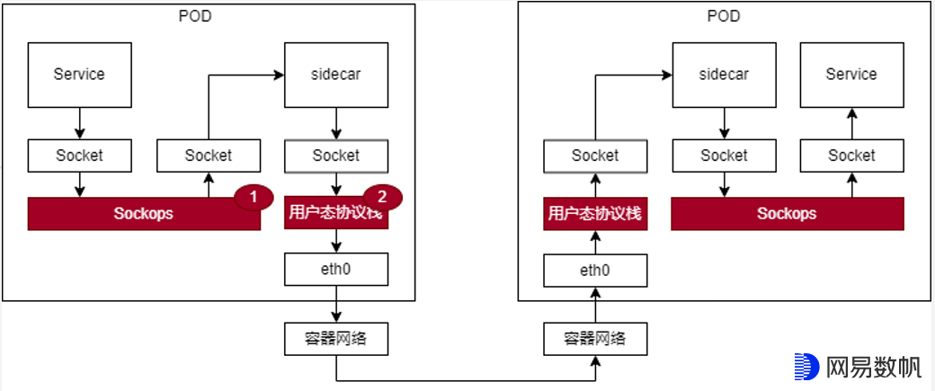 Service 和 sidecar 之间属于同一个节点的两个容器间的通信,可以采用 Sockops 组件进行加速。