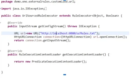 5. 从本地文件加载原始规则。这个方法getConfigStream()返回一个 java.io.inputStream。它提供了从任何地方加载原始字节的灵活性。