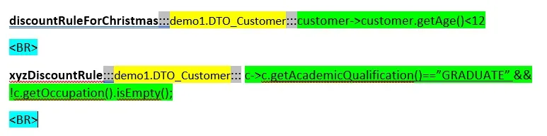 配置存储了规则,这些规则只是简单的 java 方法或布尔表达式。为了避免 Java 语法的冗长,我们也采用了 Lamda 和方法引用,从而在 Java 方法的语法之上提供了一个额外的抽象层。