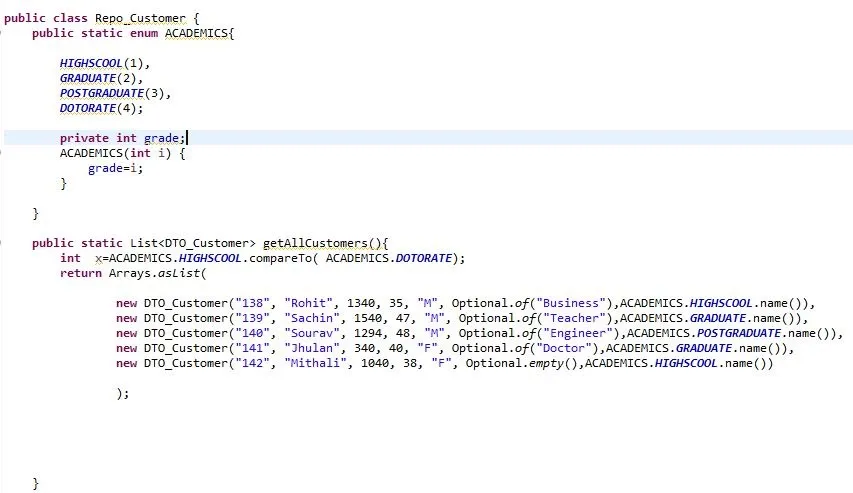 问题陈述: 一个高档的服装零售店是经常在不同的场合为顾客提供折扣,基于一系列不同的可参考标准,比如职业、收入水平、工作 / 居住场所、教育水平等等。为了不复杂,我们假设一个简单的客户模型类如下: