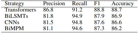 显然,Transformer 结果显著更优,这是因为 Bert 和 Transformer 结构更加匹配。