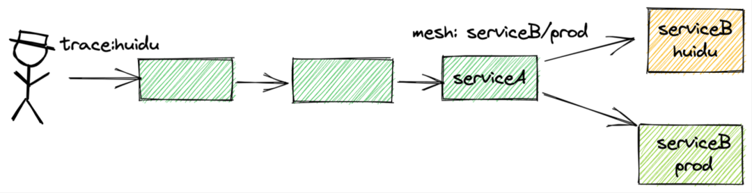 因为我们线上经常会出现应用不同的环境集群,其实是为了不同的诉求去用的,比如像搜索集群和交易集群,它们需要进行物理隔离,然后比如上线的时候,可能需要做一定的灰度验证等等。这样的话我们就可以基于 trace 的参数匹配去控制它,只要以这样两种方式作为路由模型的支持,是满足绝大部分的业务诉求的。