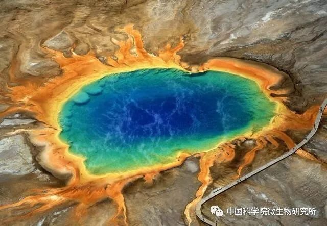 嗜热微生物是指最适生长温度高于45℃~ 50℃的微生物,最适生长温度在80℃以上。德国科学家在海底火山喷发口发现一种古菌,能生活在110℃以上高温中,最适温度为98℃,降至84℃即停止生长。最为人们熟知的热环境是美国黄石国家公园,在该公园接近沸点或者酸度极强的泉水中仍有微生物的存在,它们产生的色素使得泉水呈现出了不同的色彩,形成了独特的一道靓丽风景线。