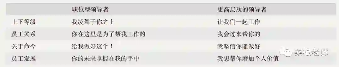 初入管理,要先用好职位权力,保证事情的正常推进,但是一味的使用职能权利,把自己打造成一个职位型的领导,长远来看不见得是好事;通过下表的对比,就上下立判。