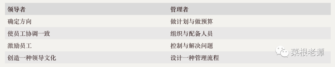 可见,管理者更关注事如何做,而领导者更关注人如何带。