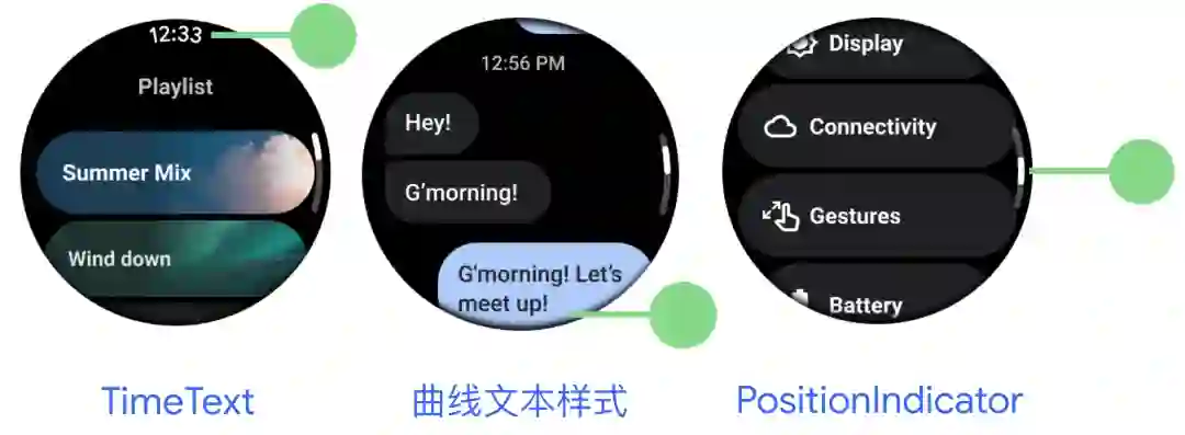 1. 开发者可以继续使用其他与 Material 相关的开发库,如 Material 涟漪和通过 Wear Compose Material 开发库进行扩展的 Material 图标。