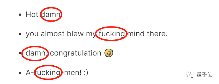 谷歌数据集把这些“脏话”拿来作为判断的依据,但如果仔细读完整个评论,就会发现这个所谓的“依据”只是用来增强整个句子的语气,并没有实际的意义。