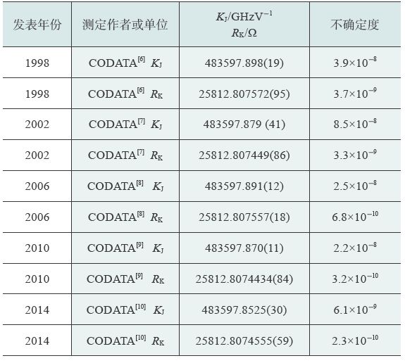 表2 约瑟夫森常数KJ和冯·克里青常数RK测量进展一览表