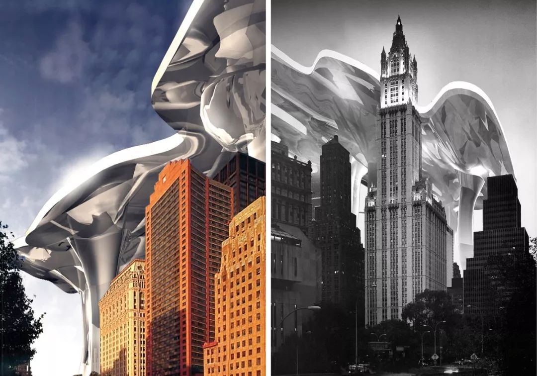 9·11事件发生时,马岩松正在耶鲁,师从扎哈·哈迪德(望京SOHO与银河SOHO是其工作室在北京的代表作),作为毕业课题,他设计了一个名为“浮游之岛”的遗址方案,马岩松的名气与争议自此开始。