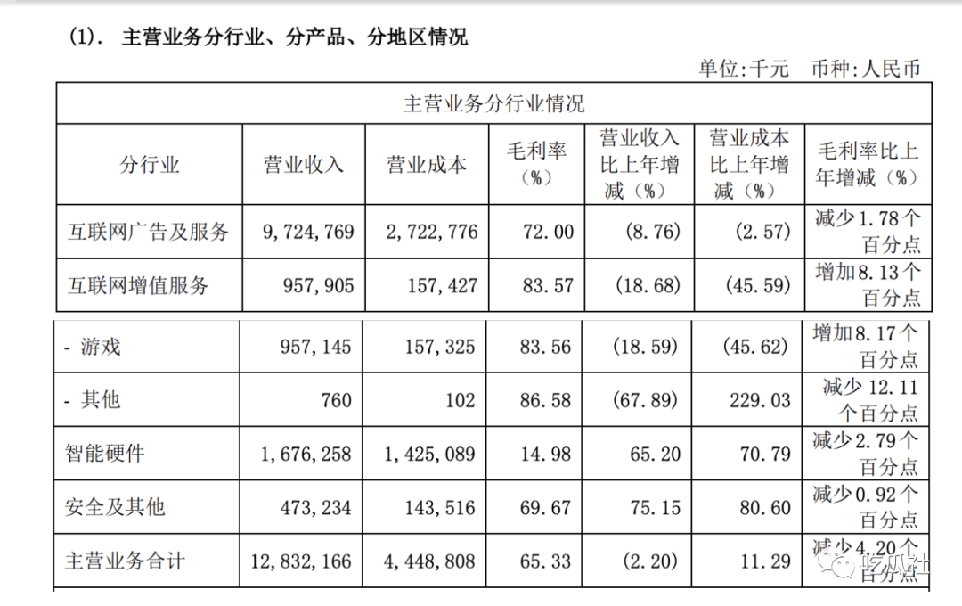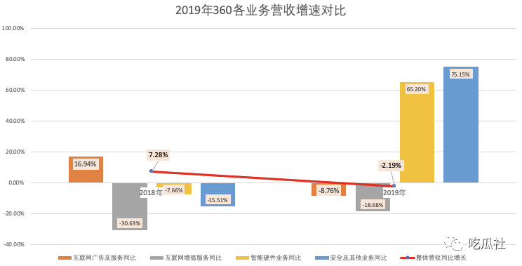 在360刚公布的2019财年报告中,营收128.4亿,但与2018年相比,同比下滑了2%。