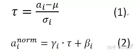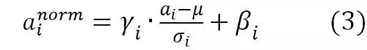 为经过规范化操作后的规范后值。整个规范化过程可以分解为两步,第一步参考公式(1),是对激活值规整到均值为0,方差为1的正态分布范围内。其中,