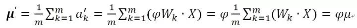 也就是说均值也被同比例缩放,这里的关键是因为BN的统计量取值范围是来自于同一个Mini-Batch的实例,所以经过的是用一个神经元,于是对应了相同的边权重向量,那么缩放因子相同,就可以提到求和公式之外。