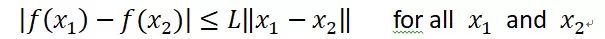 ,用它们的距离去和经过函数映射后的值(就是深度网络表达的损失函数)的距离进行比较,如果存在值L满足上述公式条件,也就是说函数映射后的距离一定在任意两个x差值的L倍以内,那么这个函数称为L-Lipschitz函数。而L的大小代表了函数曲面的平滑程度,很明显,L越小曲面越平滑,L越大,则曲面越凹凸不平,时而高峰时而波谷不断颠倒跳跃。举个例子,假设你一出门迈出一步才1米