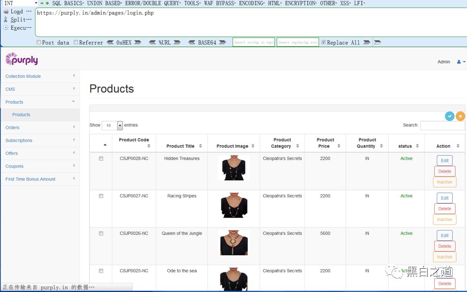 一个小商城站,最终目的,拿到管理员账号密码,登进后台,上传自己的 webshell,下面是注入点和后台入口: