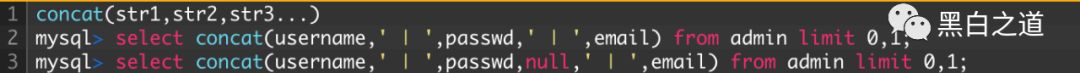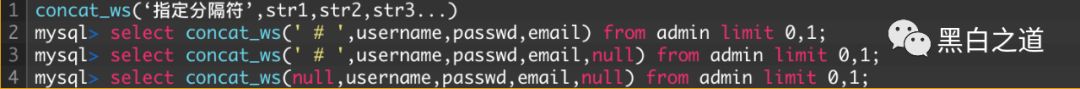 同样是连接多个字符串,但可以在开头指定分隔符,跟 concat()稍微不同,它会自动忽略中间的空值,只有分隔符为空,整体才返回空