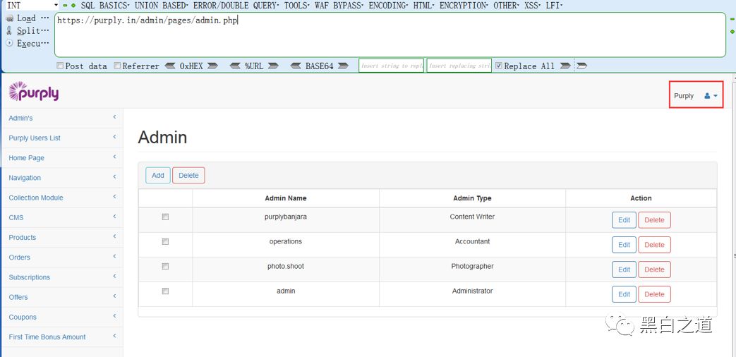 ‘Purply’ 后来发现这个用户才是真正的管理员,登陆以后的效果,如下