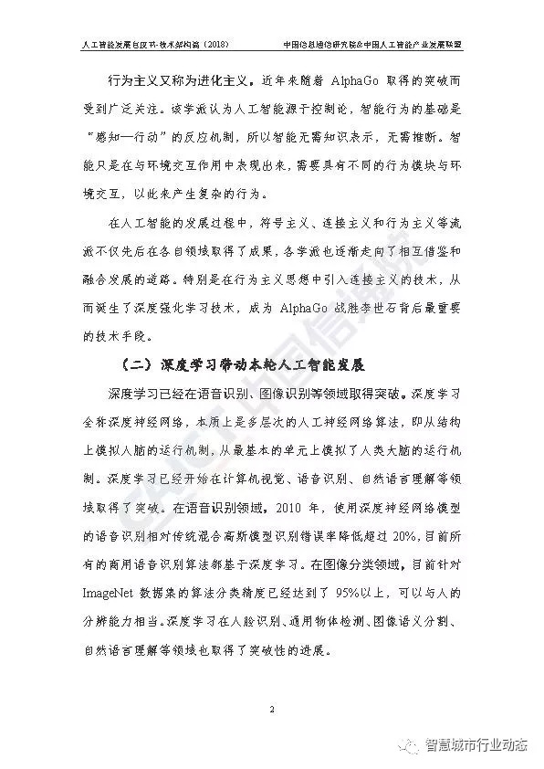 白皮书选择以深度学习算法驱动的人工智能技术为主线: