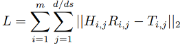 如Figure 1,首先将嵌入空间分割成段,并根据关系来排列批次。然后,对于每个训练步,PROCRUSTES的工作流本质上被分解为m × (d/ds)个并行过程,m为关系数。设i表示关系id,j是子空间索引,所以关系i的所有三元组的头实体的第j个子空间向量的列联合可表示为H_(i,j),所有三元组的尾实体的第j个子空间向量的列联合可表示为T_(i,j)。关系i的第j个子空间向量表示为R_(i,j)。最后的目标函数为: