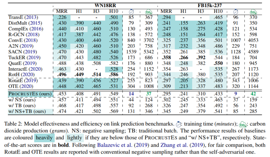本文提出了一种新的KGE训练框架,PROCRUSTES,它是环保的、高效的,可以产生非常有竞争力甚至接近最先进的性能。大量实验表明,该方法是有价值的,特别是它能够显著地减少训练时间和碳排放。