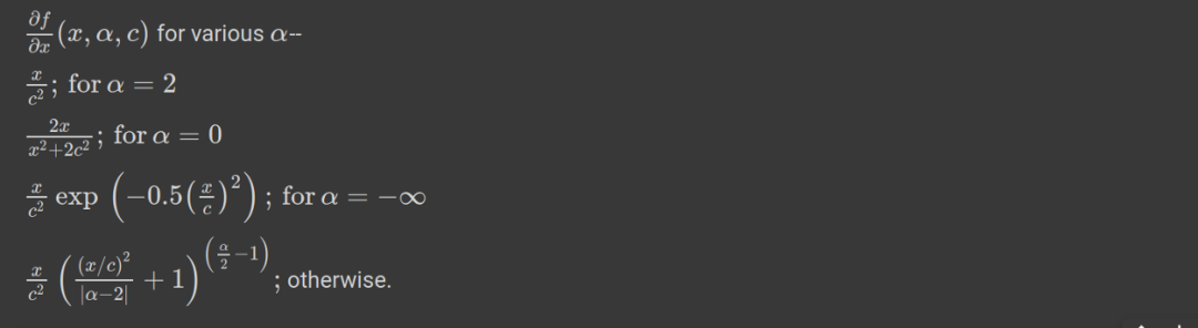 表达式3:鲁棒损失(表达式1)对于不同的α的值相对于x的导数