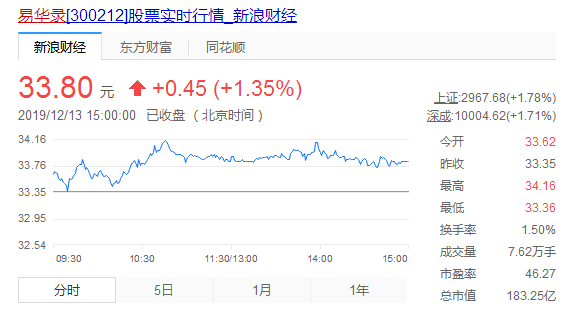 12月13日,易华录股价上涨: