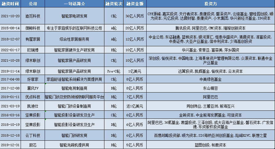 2020年疫情的爆发,行业发展有所放缓。进入2021年,经济回暖,随着“十四五规划”纲要的发布,智能家居行业的投资热情再度升温,融资金额和数量较上年均有明显提高。
