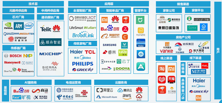 应用层主要是提供终端产品的全屋智能厂商、传统家电厂商、智能单品厂商。