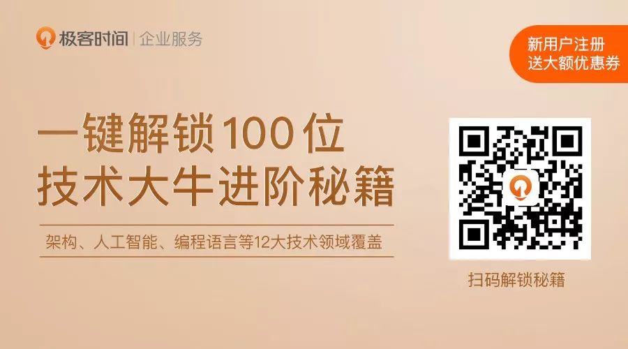 2019年超100位技术大牛将结合自己的积累和思考,分享他们的进阶秘籍,还有架构、前端等领域的干货内容,通过极客时间企业账号为团队制定学习计划还有福利。