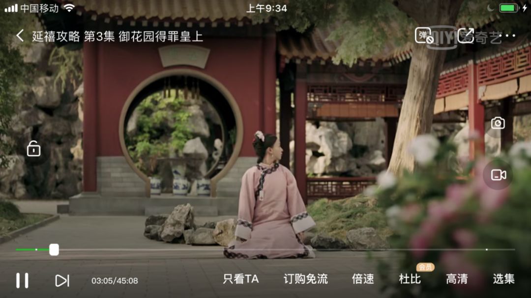 爱奇艺 APP 端的只看 TA 功能:只看吴谨言的片段,只播放进度条中绿色为吴谨言片段