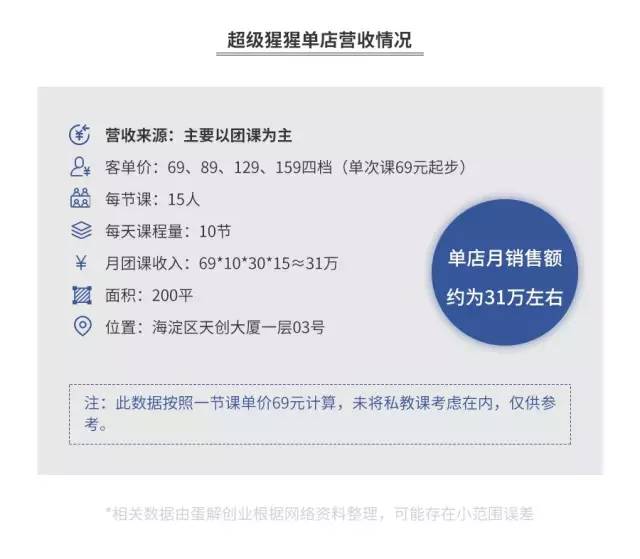 由于健身房的成本结构较为复杂,很难准确计算,此次蛋解创业编辑部只能大致推算了一下探访这家的店盈利情况,数据仅供参考。