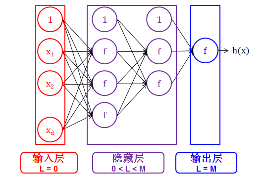 神经网络的每层用 L 表示,其中 L = 0, 1, 2, …, M.