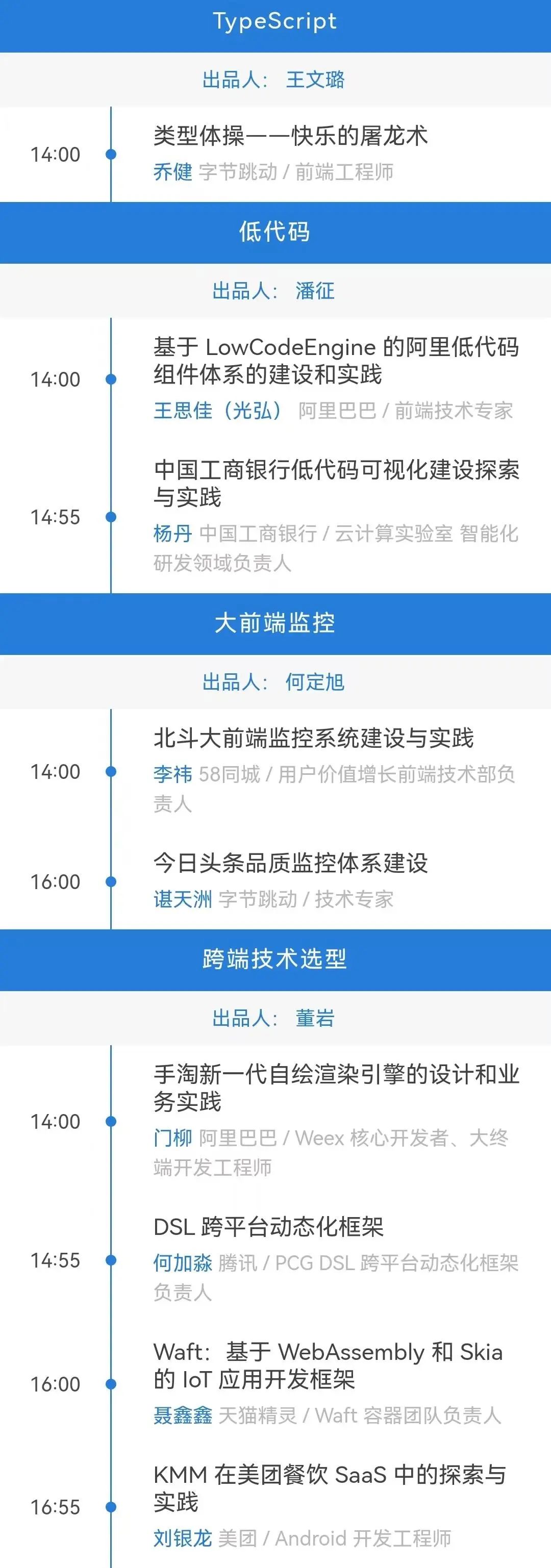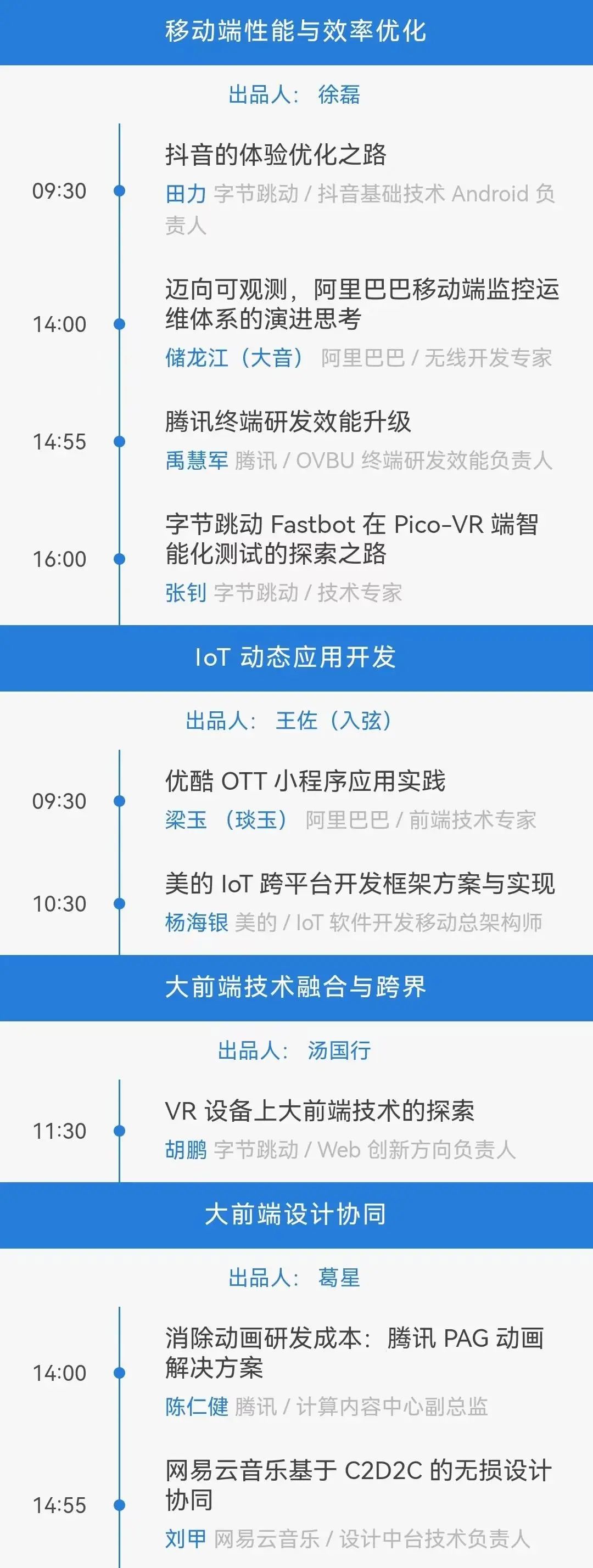 除本专题外,GMTC 北京站还设置了 IoT 动态应用开发、移动端性能与效率优化、TypeScript、跨端技术选型、云研发实践、大前端监控、大前端设计协同、低代码等多个热点专题,均已上线部分精彩内容,更多议题正在打磨上线中......