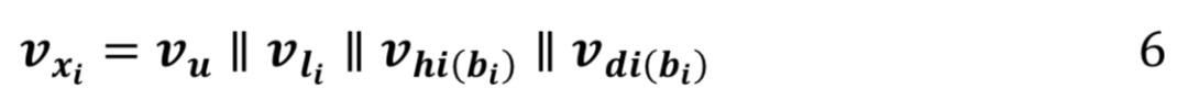首先我们介绍多源输入信息的嵌入。通过词嵌入技术,我们将离散的用户信息嵌入到一个低维向量中,用 Vu 来表示。对于每一个位置,我们也使用相似的方法将这个位置嵌入到一个低维向量中,用 Vl 来表示。另外,我们又引入了时间信息,用 Vdi(b) 来表示天的向量,Vhi(b) 来表示小时的向量。最后这四者会被拼接起来成为循环神经网络的输入: