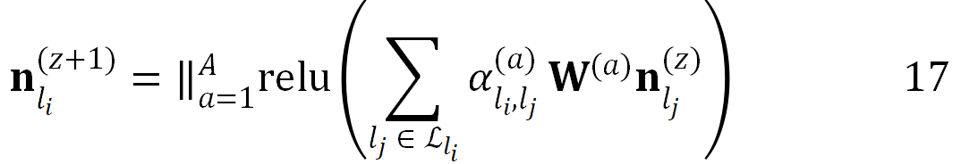 上式中是一个矩阵,这个矩阵每一行都是一个节点的表示, z 是第 z 次迭代。接着,在图神经网络的基础上,我们引入了图注意力神经网络,并在计算注意力机制的时候考虑了移动的状态