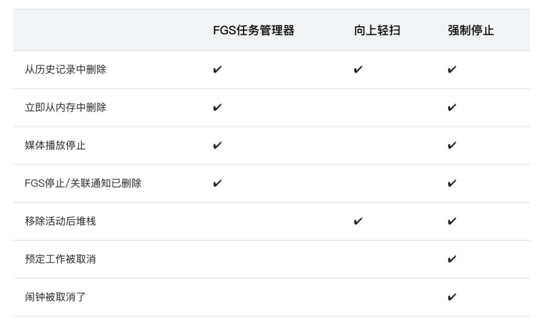 在关于前台服务管理器的相关文档中,我们也得以第一次看到现代 Android 对「多任务界面上划应用卡片」这个行为的定义,以及它和前台服务管理器的实际区别。